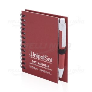 Memo Box personalizzato, con esterno in cartone riciclato e riciclabile, blocco in carta bianca da 120 fogli, una mini penna a sfera eco (non personalizzata), 20 graffette clip in uno scomparto nascosto e 5×20 segnalibri adesivi