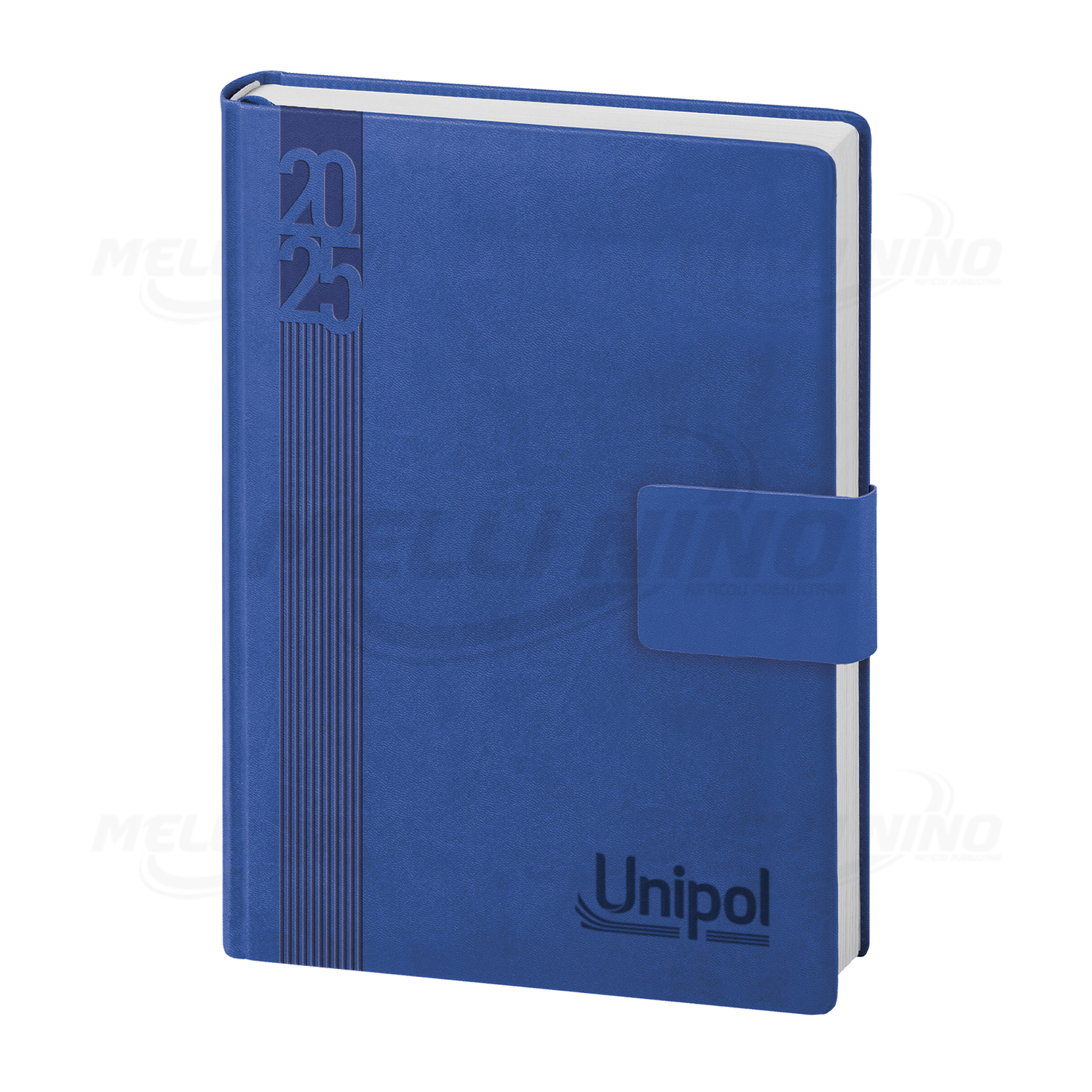 Agenda Giornaliera “Magnetica”, dimensione 15×21 cm. circa, ordinabile con solo logo Unipol sulla copertina o personalizzabile con la propria grafica all’interno, ad un colore, a partire da 5 pezzi. Interno Multilingue stampato a 2 colori con sabato e domenica abbinati, rubrica telefonica, cartina geografica, festività nel mondo, chiusura con magnete, corredata di astuccio.