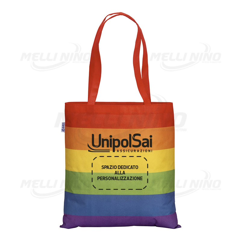 Borsa Shopper arcobaleno personalizzata, in r-pet 80g/m2, manici lunghi