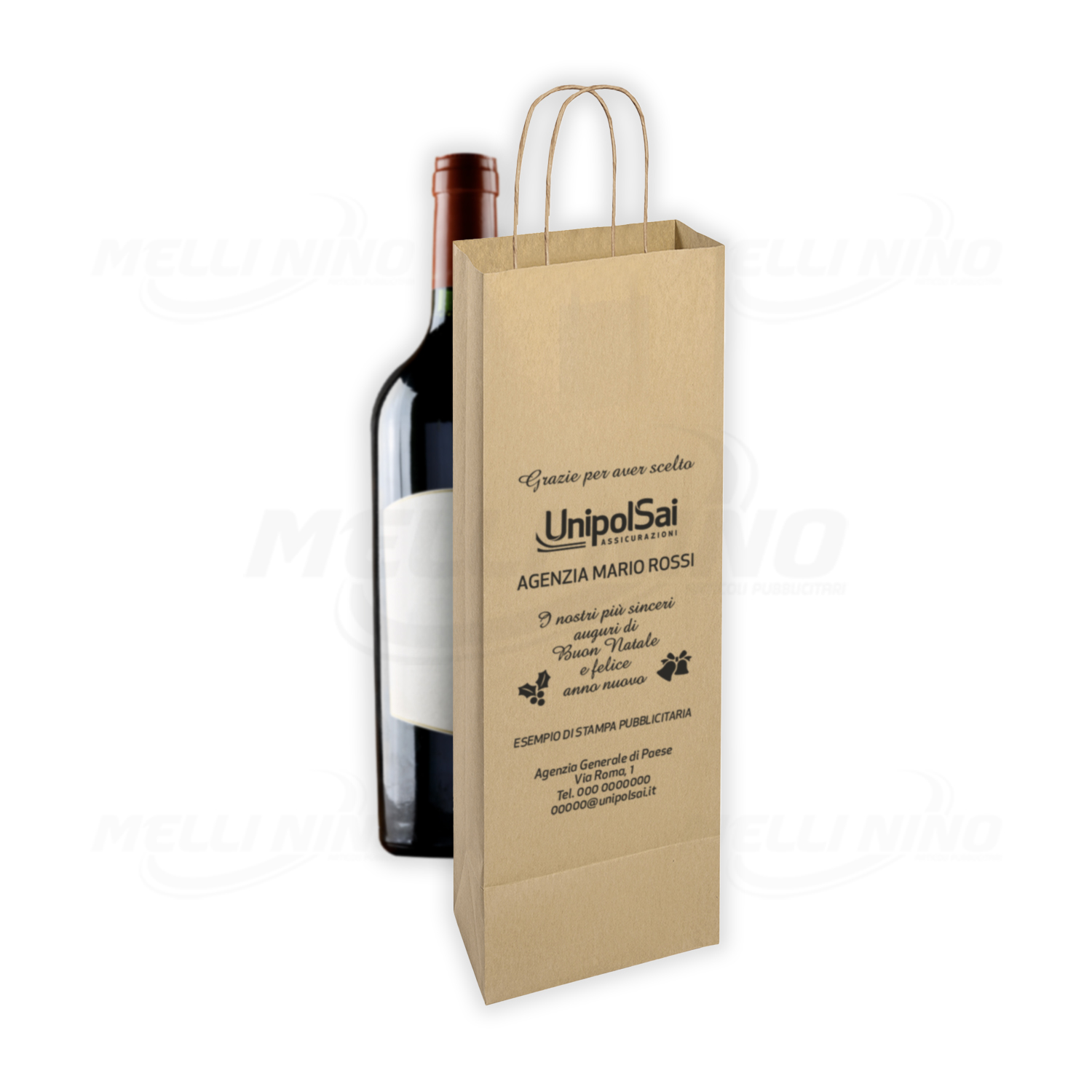 Borsa Portabottiglie Vino personalizzata, in carta. Dimensioni 14×8,5×39,5 cm.