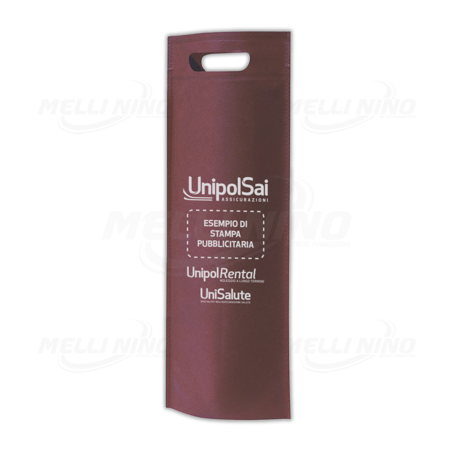 Borsa Portabottiglie Vino personalizzata, in TNT. Con manici fustellati. Dimensioni 40×17 cm.