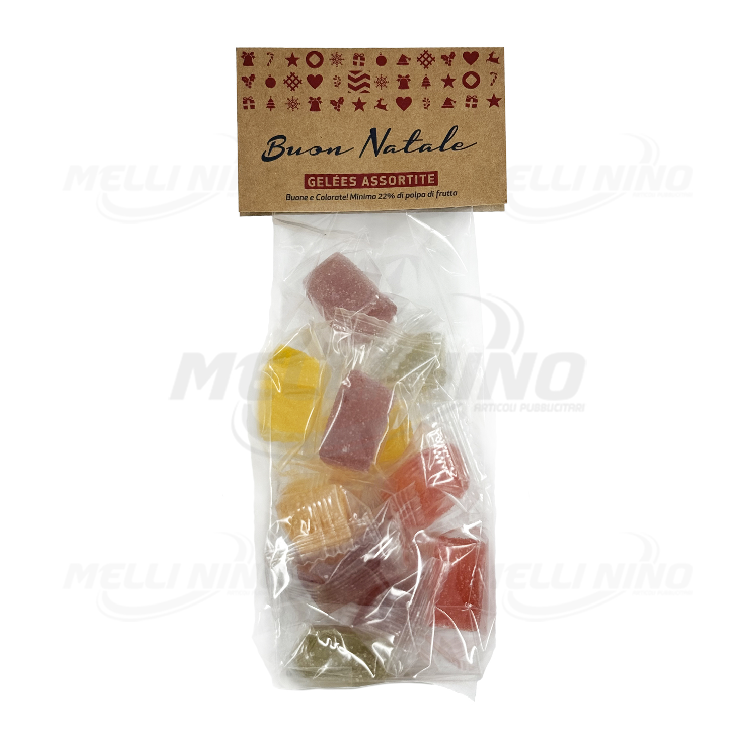 Caramelle Gelatine Morbide Gelèes ai gusti di frutta (fornite assortite), confezione da 100gr acquistabile con etichetta generica Unipol o personalizzabile, in cartoncino svedese 225 gr/mq stampato a colori. Personalizzabile con messaggi di auguri, logo personale, loghi istituzionali (UnipolSai, UnipolRental, UniSalute, UnipolMove, ecc…), contatti (indirizzo, telefono, email, ecc…) e qualsiasi grafica realizzata secondo le Vostre esigenze!