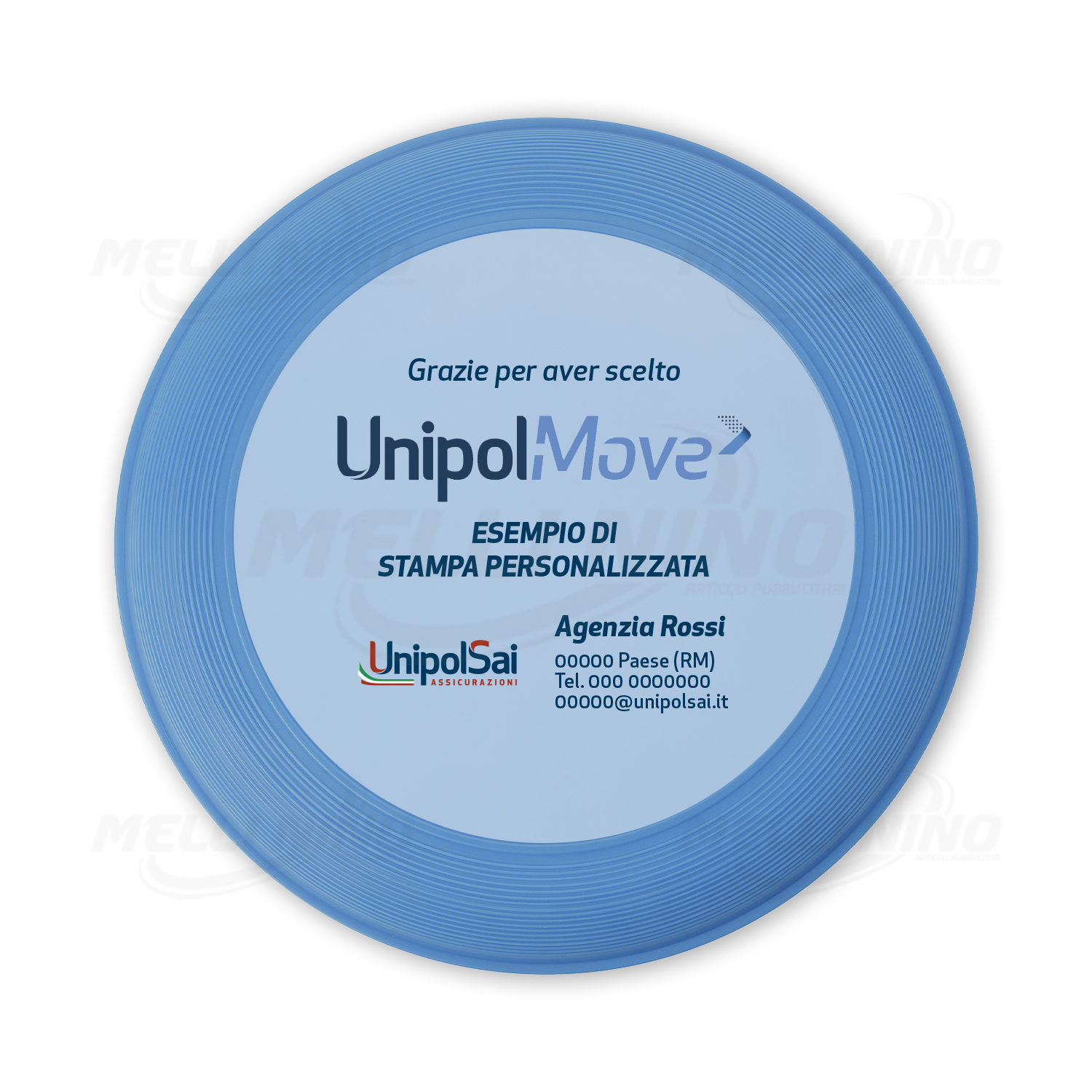 Frisebee personalizzato, stampa adesiva personalizzata a colori inclusa nel prezzo! Personalizzabile con logo, contatti (indirizzo, telefono, sito, social, ecc…) e qualsiasi grafica realizzata secondo le Vostre esigenze!