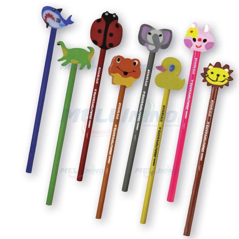 Matita con gomma “Animals” personalizzata, fornite in soggetti assortiti