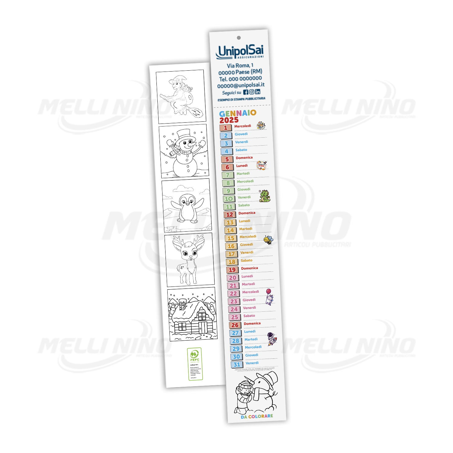 Mini Calendario da Colorare personalizzato, Dimensione cm. 7×47 ca. – Composto da 12 fogli in carta patinata con disegni da colorare sia sul fronte che sul retro