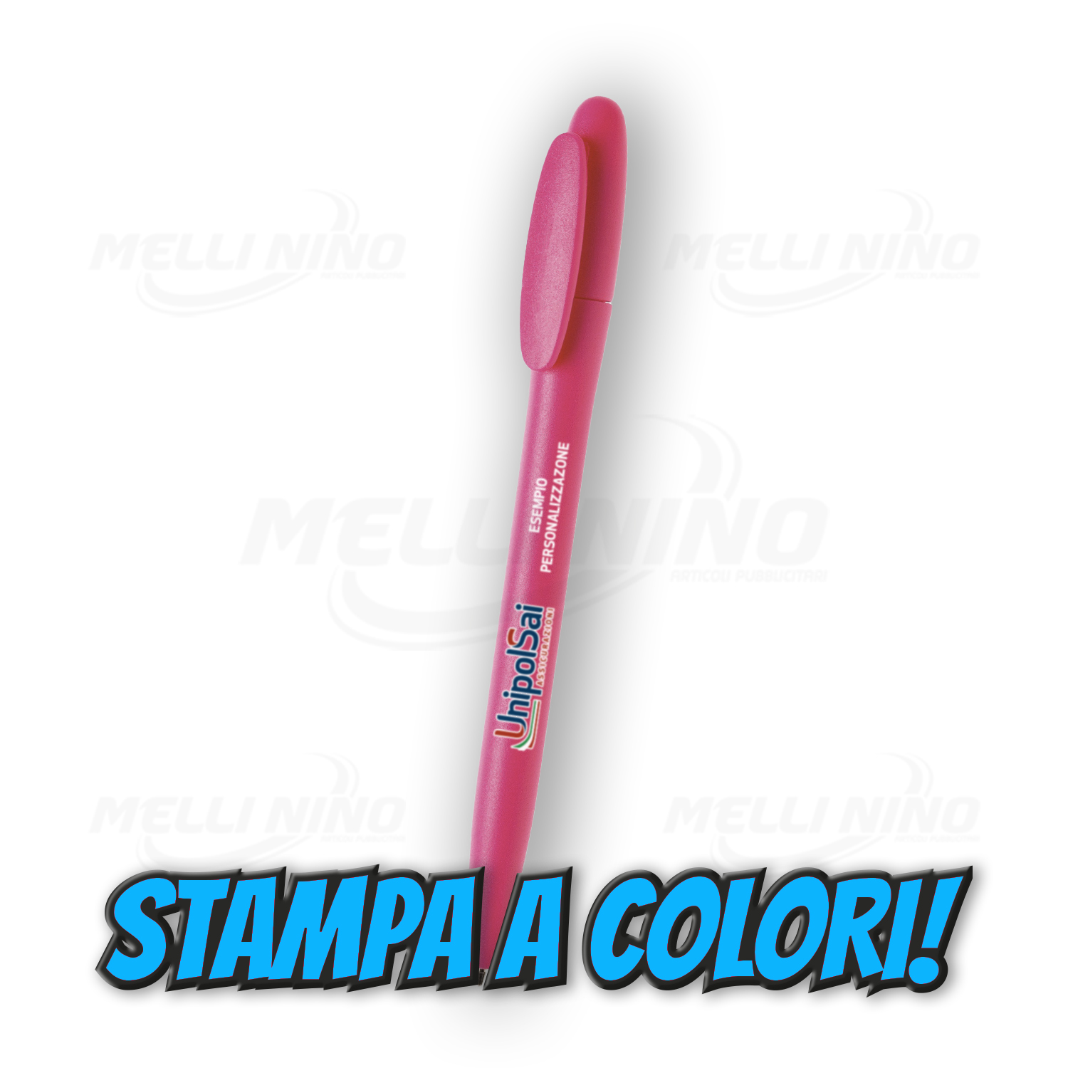 “Bay Opaca” è una penna a sfera colorata in tinta Matt (opaco) personalizzata disponibile solo con inchiostro nero, prodotta in Italia con materiale atossico e ad alta resistenza certificato, progettata per durare più di 2000m di scrittura garantiti!