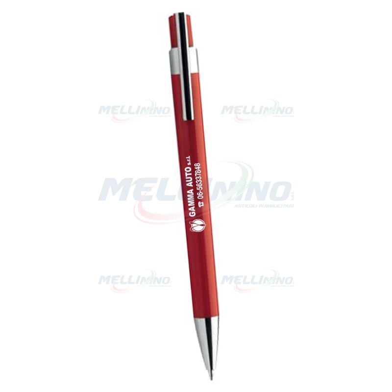 La penna ha il fusto colorato mente tutti gli inserti, la clip e punta sono cromati
