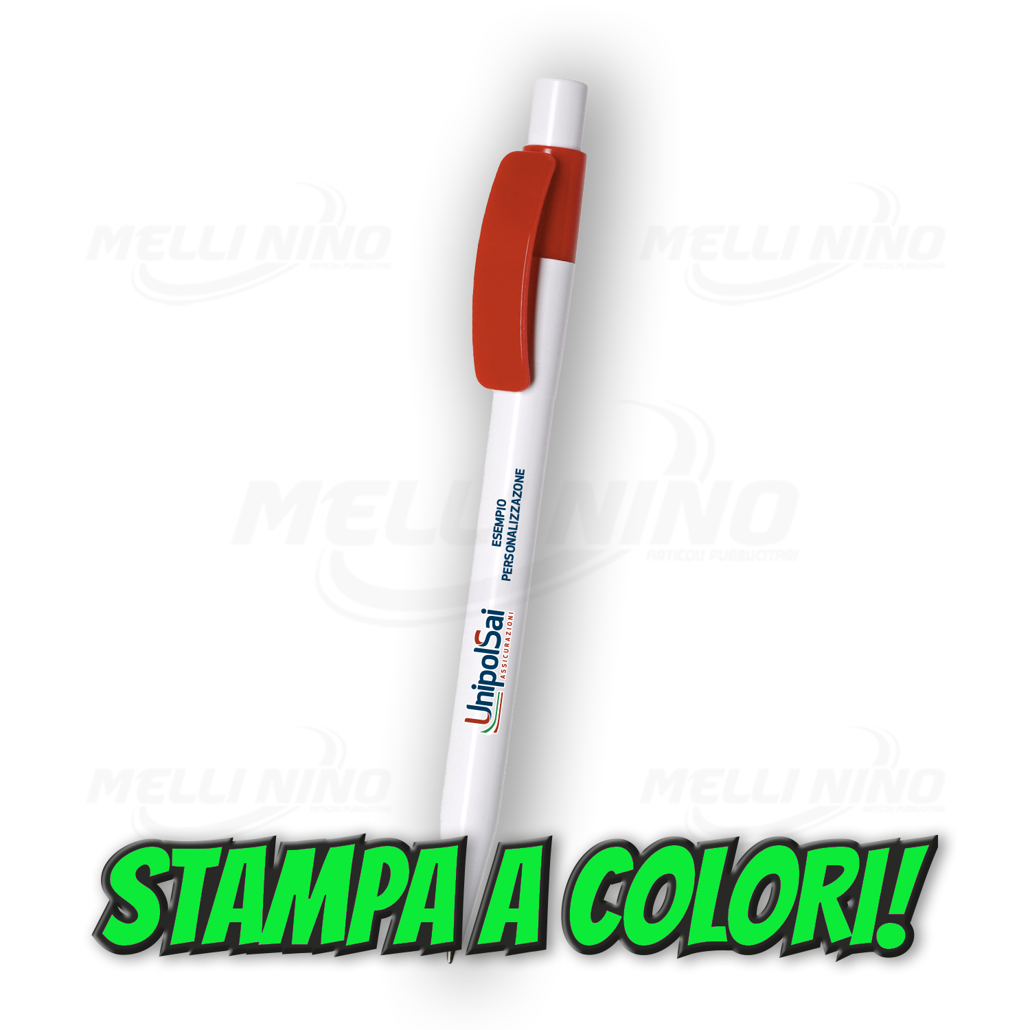 “Pixel” è una penna a sfera bianca con clip colorata, personalizzata, disponibile solo con inchiostro nero, prodotta in Italia con materiale atossico e ad alta resistenza certificato, progettata per durare più di 2000m di scrittura garantiti!
