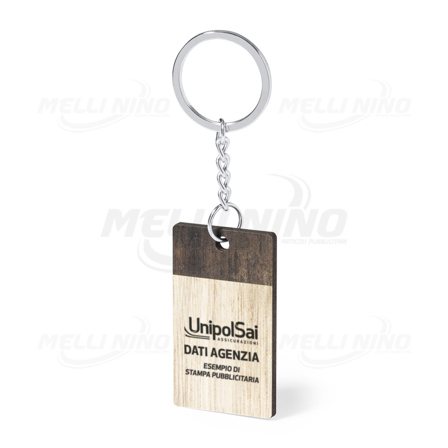 Portachiavi Legno “Bicolor” personalizzato, dalla forma rettangolare realizzato in legno naturale con finitura bicolore