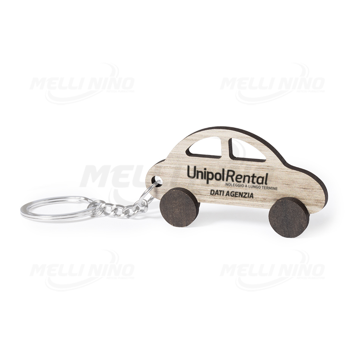 Portachiavi Legno “Car” personalizzato, design a forma di auto realizzato in legno naturale con finitura bicolore