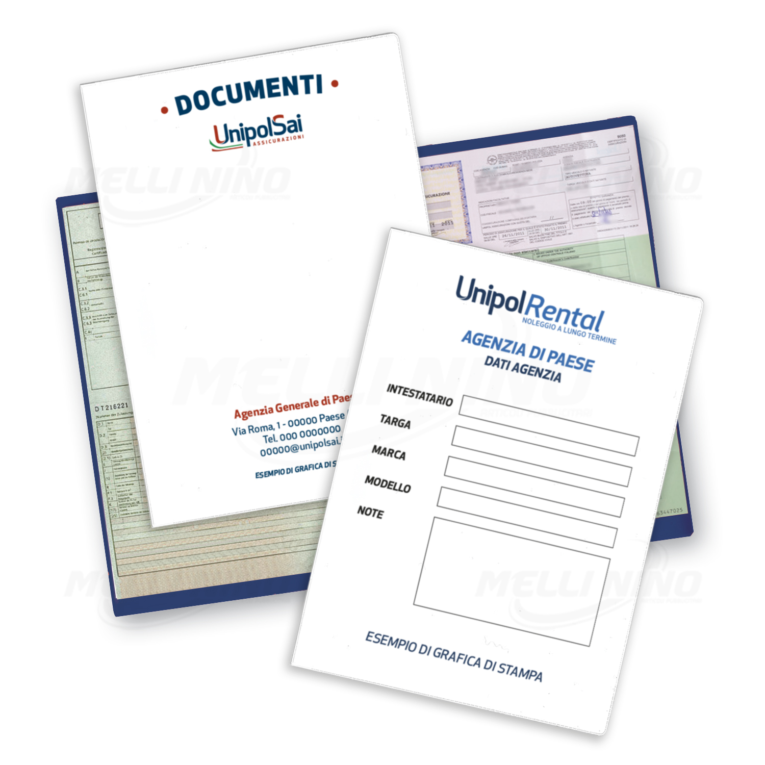 Portadocumenti formato A4 personalizzato, interno composto da due capienti tasche che possono contenere agevolmente fino a 25 fogli l’una! Ideale per polizze assicurative, contratti e documenti vari.