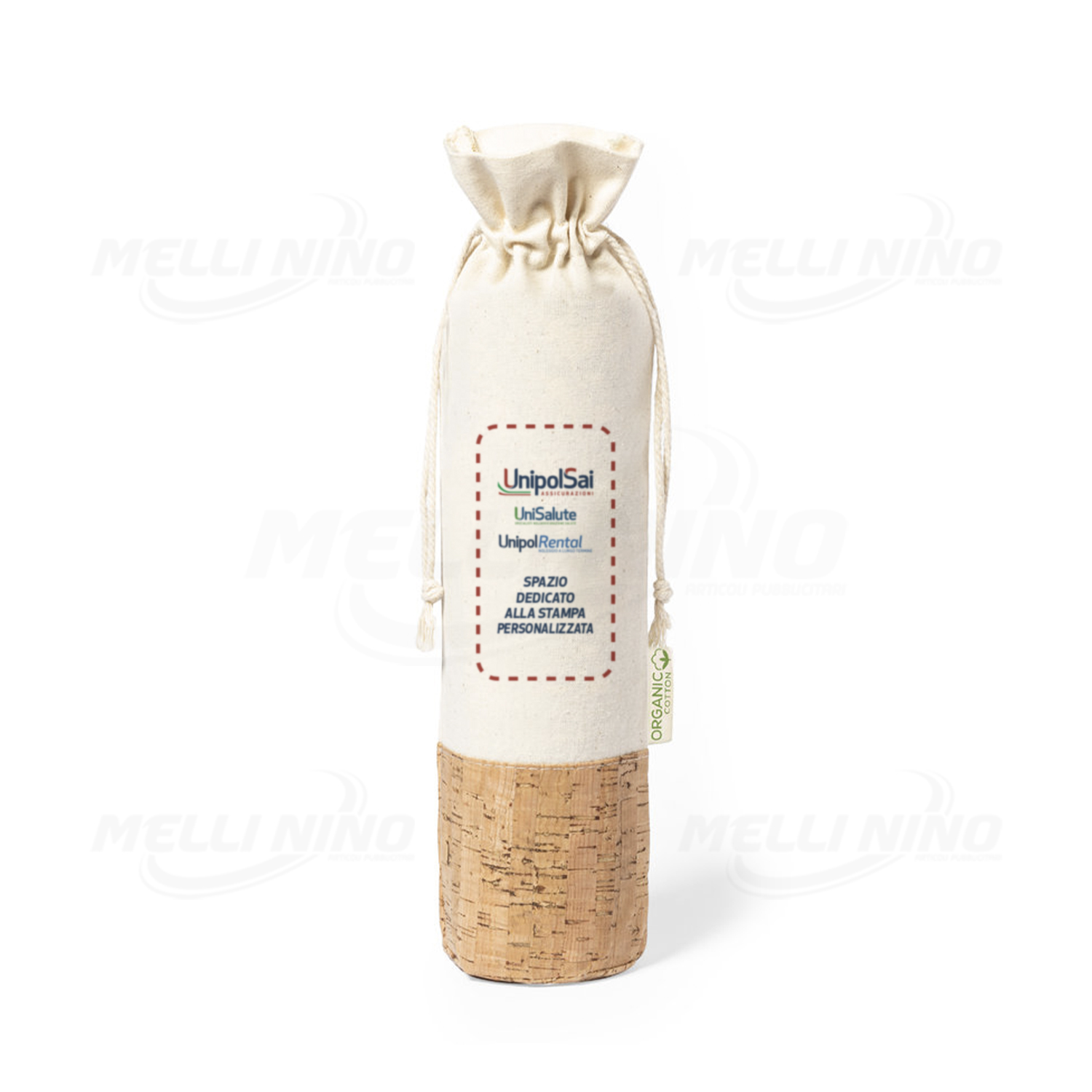 Sacchetto per Bottiglia “Nature” personalizzato, realizzata con Cotone Biologico e Sughero Naturale. Ideale per bottiglie da 750ml