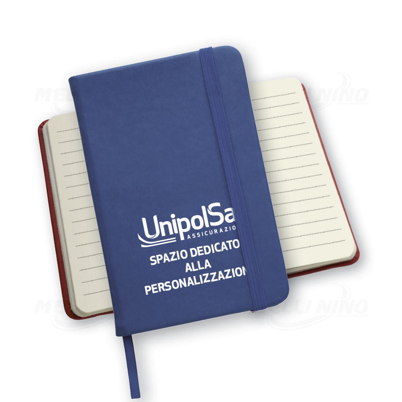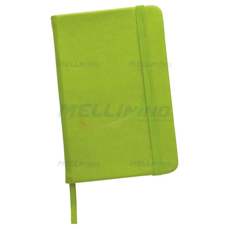 Taccuino colorato personalizzato – formato A6 (cm. 9x14x1,3 ca.) – elastico e segnalibro in tinta colore